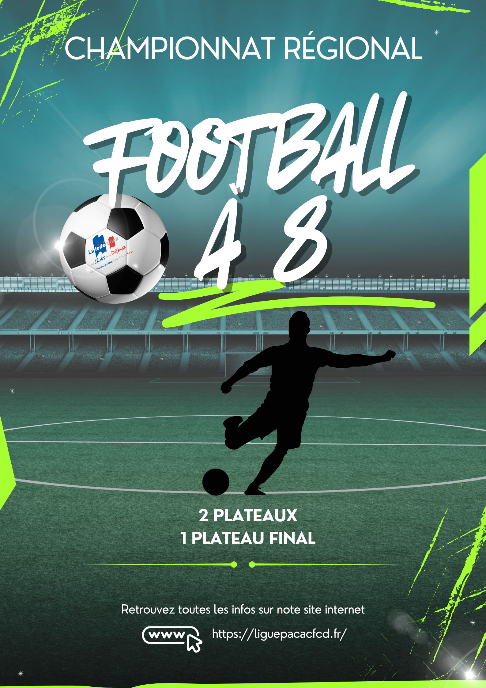 La Ligue Provence-Alpes-Côte d'Azur-Corse de la Fédération des Clubs de la Défense organise le championnat régional de Football à 8 en 3 plateaux. Les inscriptions sont d'ores et déjà ouvertes sur Sygema, jusqu'au 18 décembre 2025.
